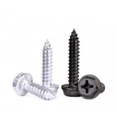 黑色碳钢十字凹穴螺丝带垫尖尾外六角法兰面自攻螺钉